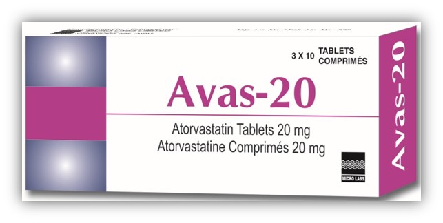 Avas-20 contains Atorvastatin 20 mg, a lipid-lowering medication indicated for the management of hyperlipidemia and prevention of cardiovascular disease.